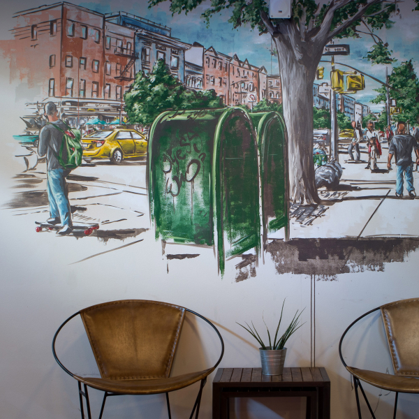 Derfor tog vi til New Yorks SOHO for at opleve den rigtige stemning, som vi stræbte efter at genskabe. I tæt sparring med ejerne er jeg kommet med idéer og skitser til alle dele af indretningen, møbler, materialer, opbygning og brug.