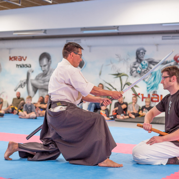 Kampsportscenteret er placeret i en ombygget fabrikshal. De industrielle lokaler skulle gøres indbydende, levende og samtidig skabe en japansk kampsportsstemning.