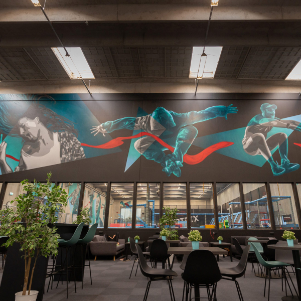 Et kæmpe projekt som lød på at ændre de tre kedelige grå haller til ungdommelige, dynamiske rum. De enorme figurer sætter tydelig kulør på underholdningsparken og giver et unikt, ungt og kraftfuldt design.