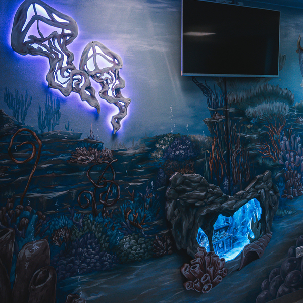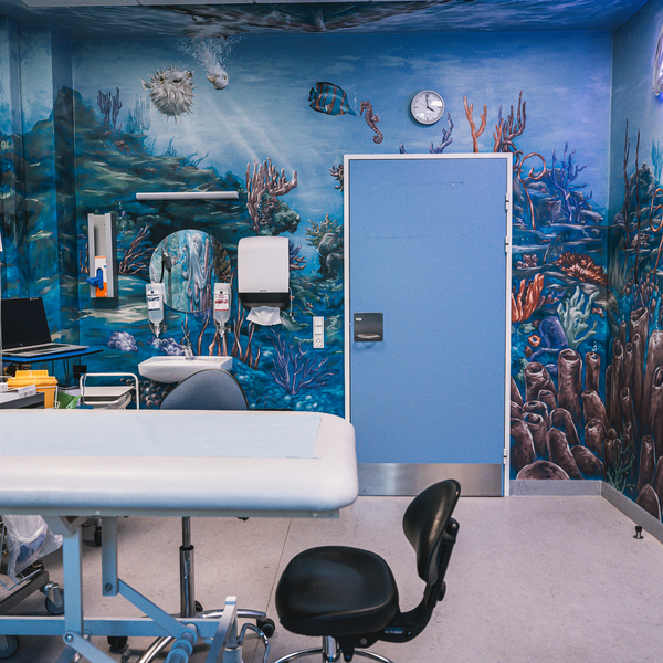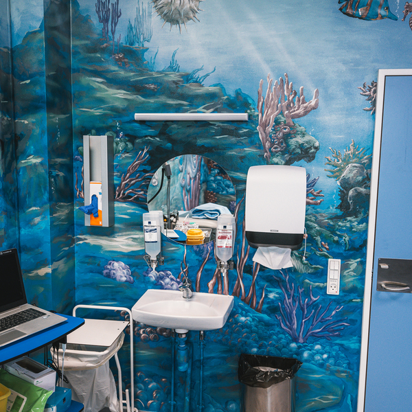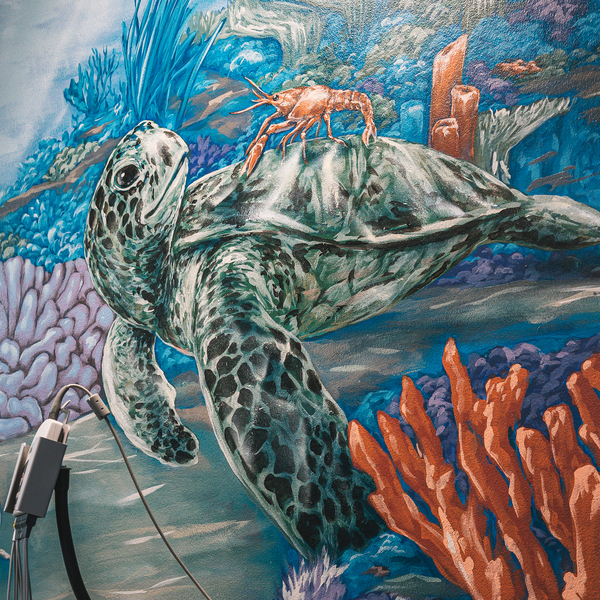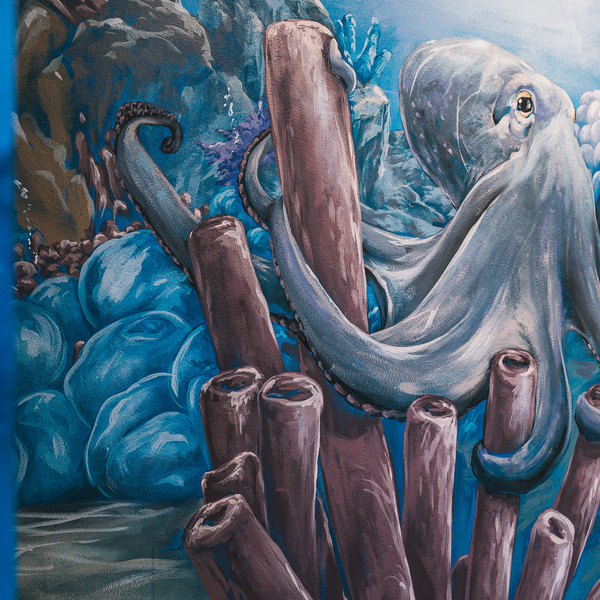 Rødkilde er et moderne gymnasium, der ligger fantastisk flot ved Vejle Fjord. Alt dette skulle formidles gennem 4 vægmalerier forskellige steder på skolen.