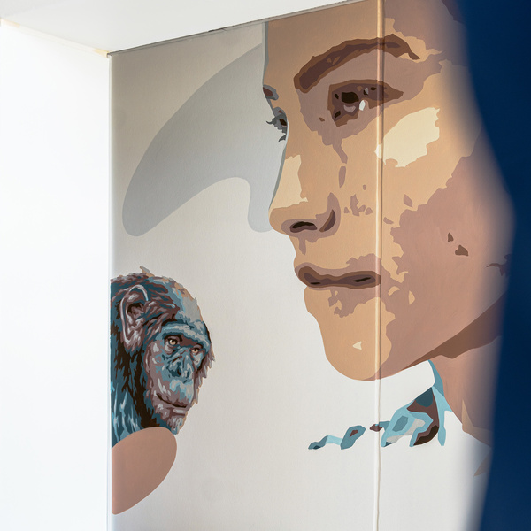 Bæredygtighed og råvarer var udgangspunktet for dette værk. Alle vægge i caféen kom i spil og illustrerede de varierede retter.