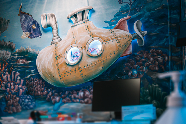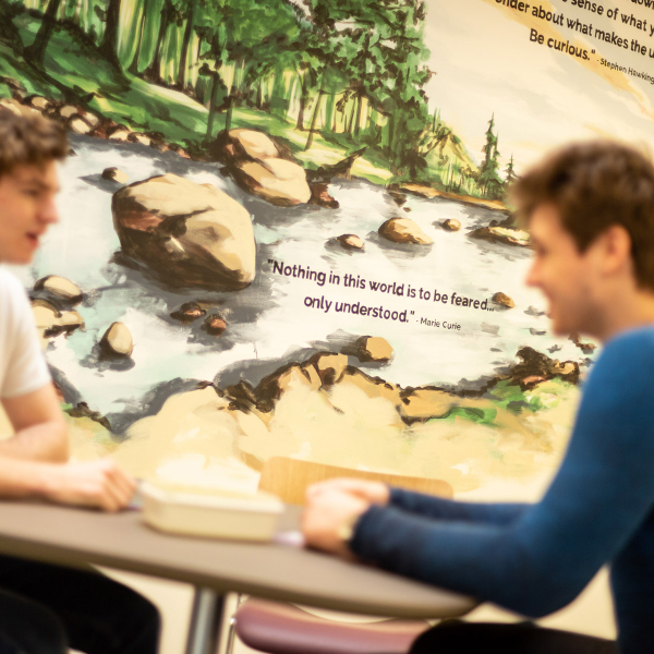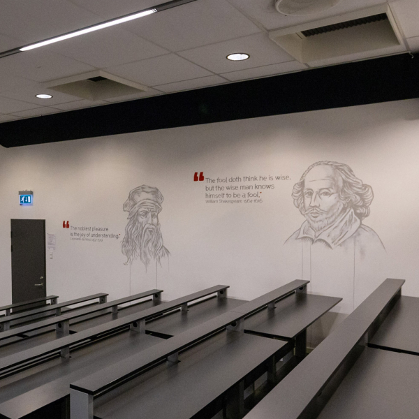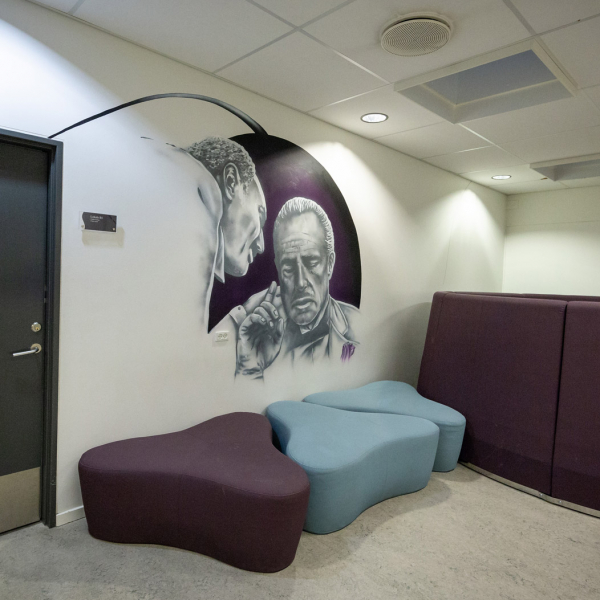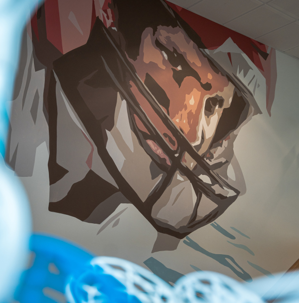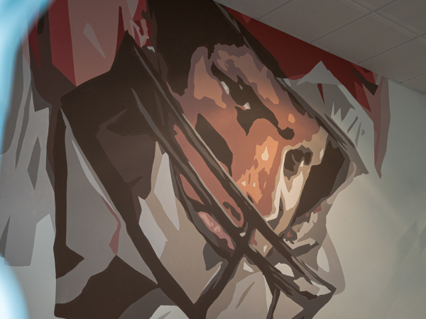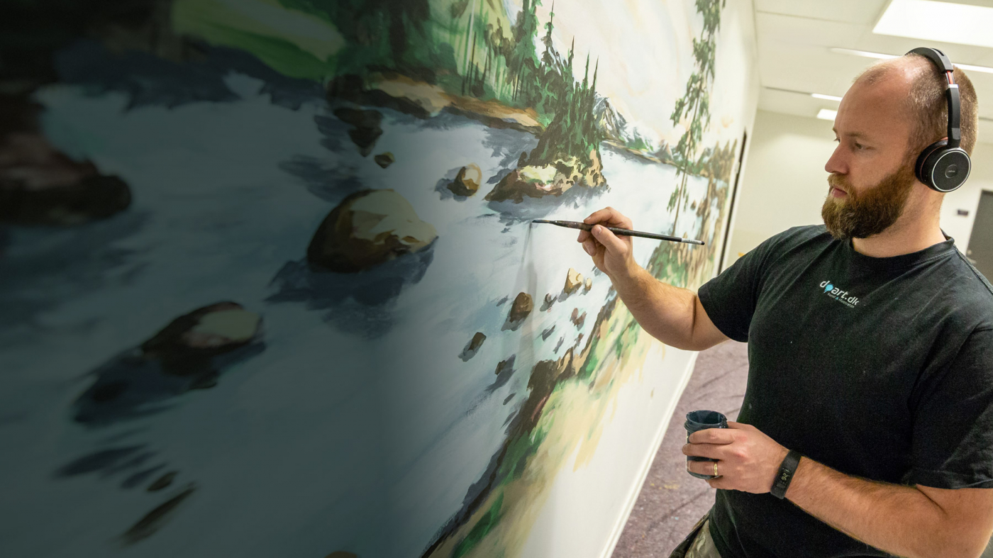 Rødkilde er et moderne gymnasium, der ligger fantastisk flot ved Vejle Fjord. Alt dette skulle formidles gennem 4 vægmalerier forskellige steder på skolen.
